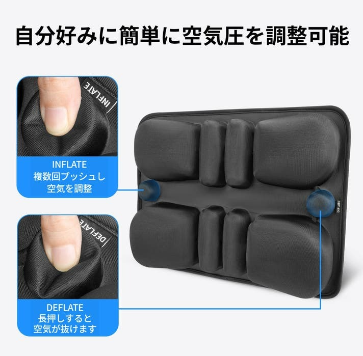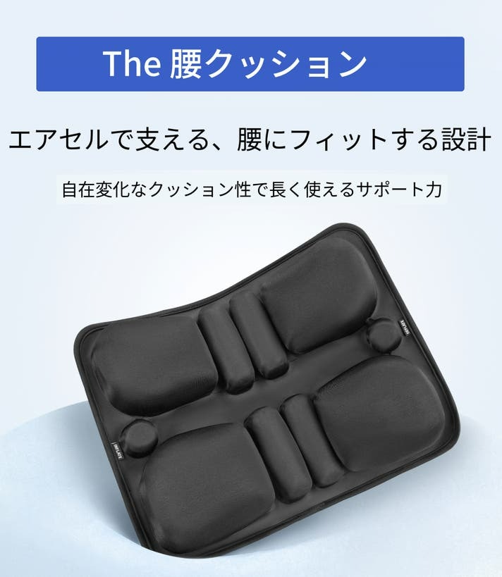 小さなエアセルが腰まわりをやさしく支え、快適な姿勢をキープします。