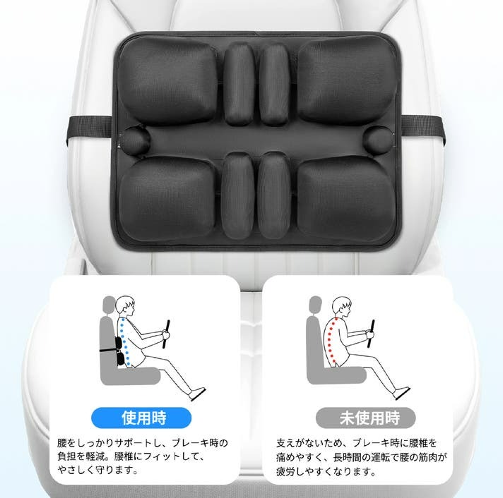 運転中の腰の緊張をやわらげるエアクッション。