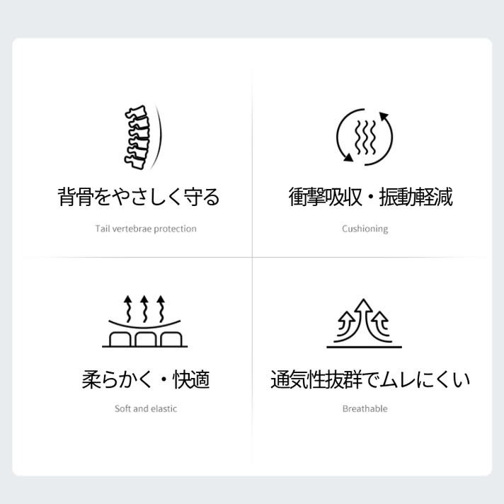 体にフィットする設計で姿勢をサポートし、腰やお尻への負担を軽減します。